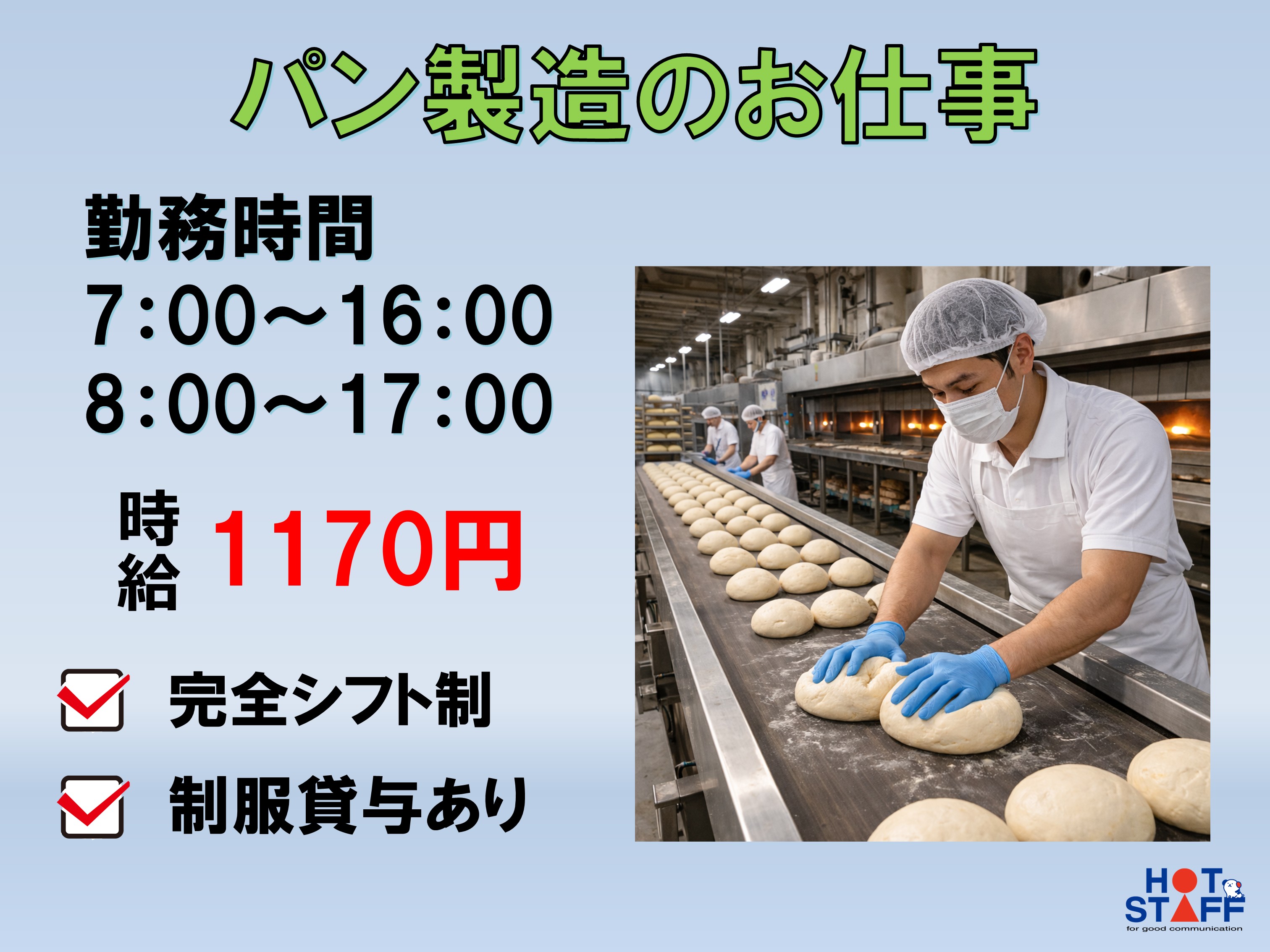 コンビニパンの製造スタッフ募集!!