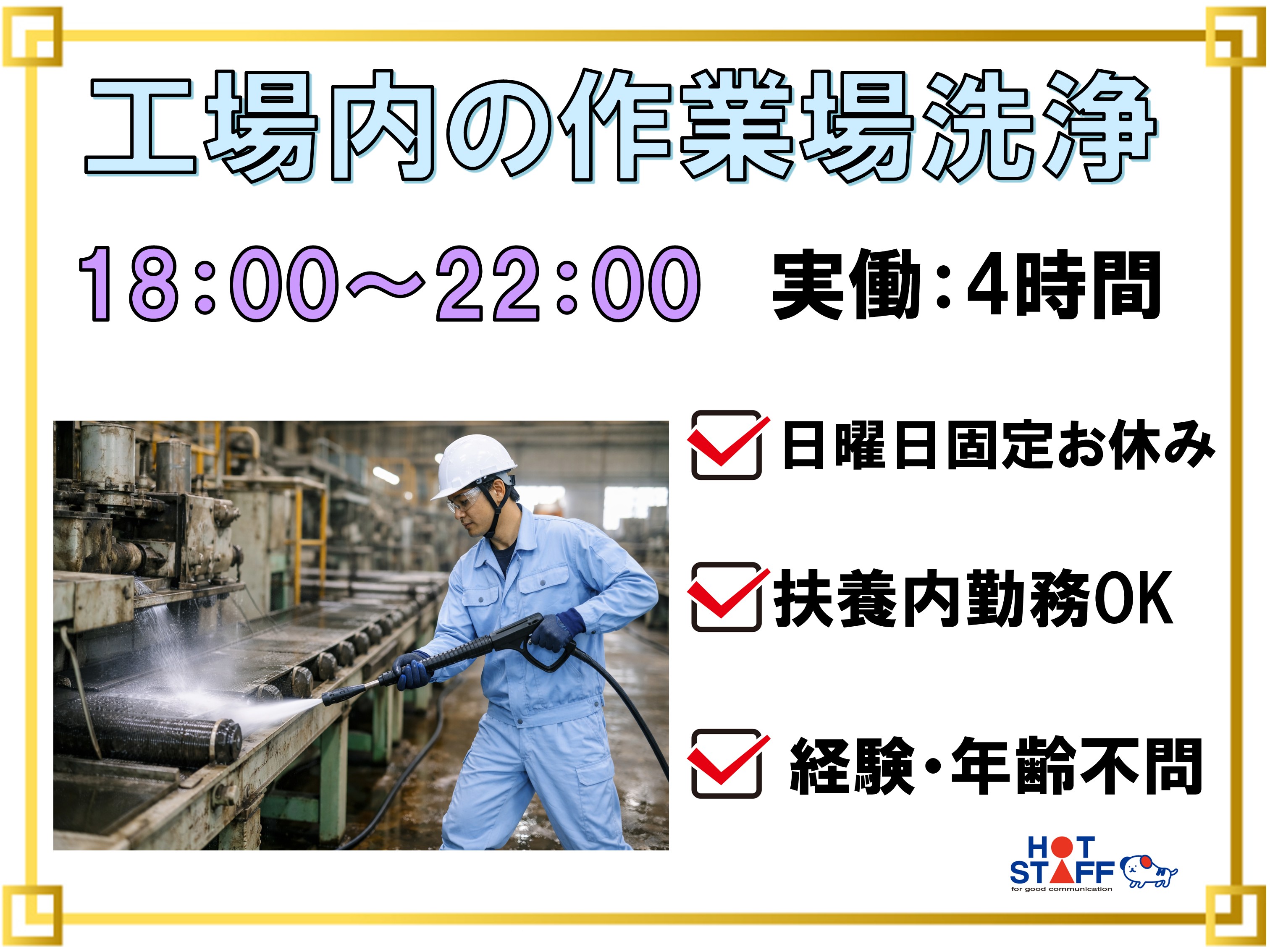 新富町×夜勤/未経験OKの工場内モクモク洗浄作業員!効率よく働きたい方にぴったり!即日払い◎