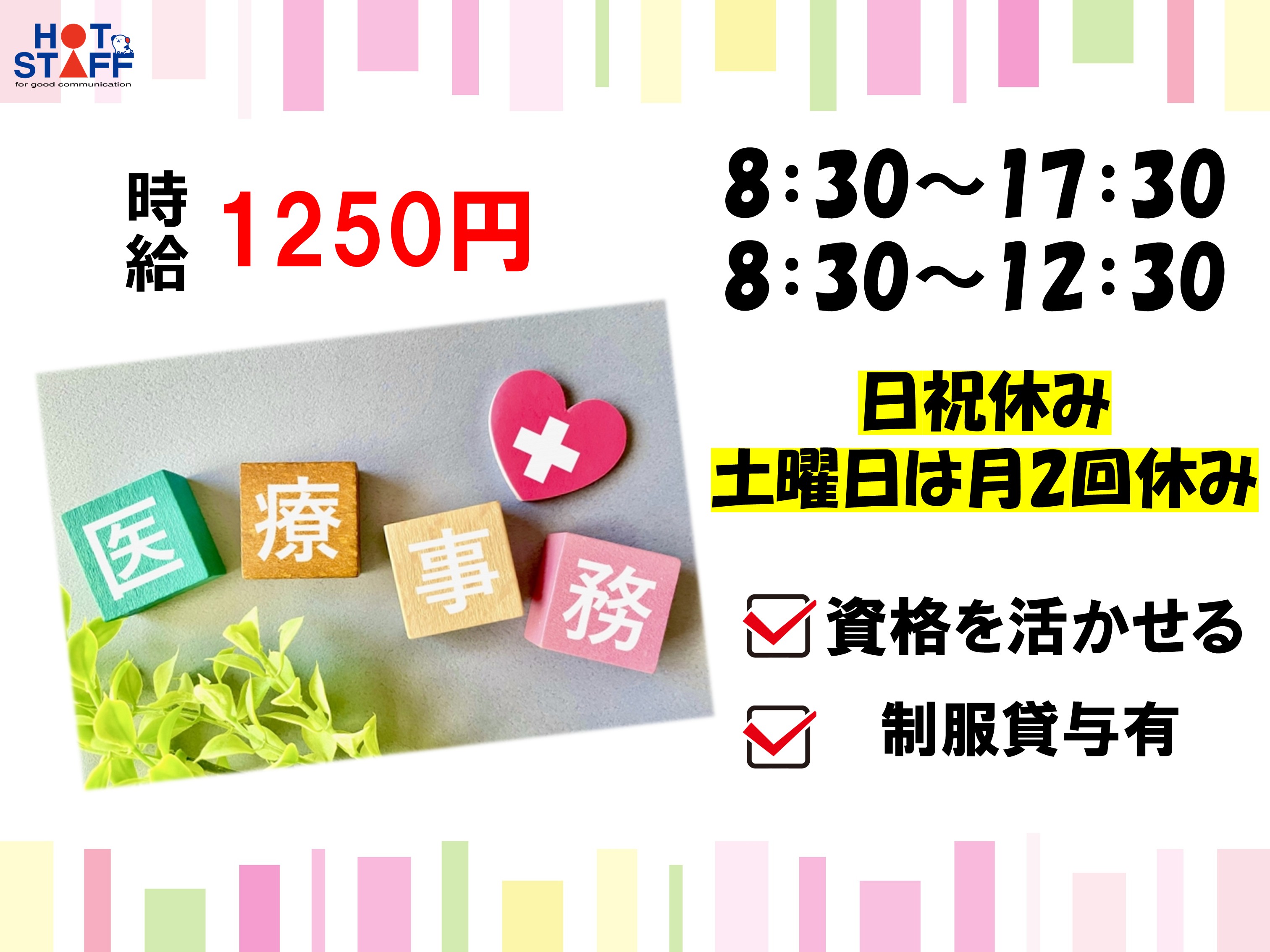 【7月末までの短期】医療事務スタッフ募集!日祝休み×残業なし・制服貸与有り