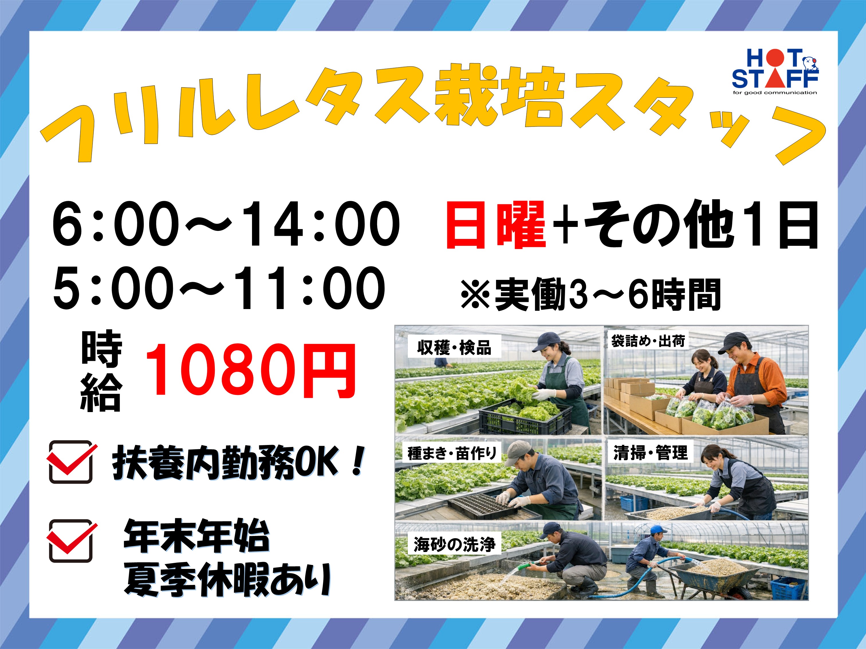 新富町×軽作業/最新ハウスでのフリルレタス栽培スタッフ!未経験OK☆扶養内のお仕事!即日払い◎