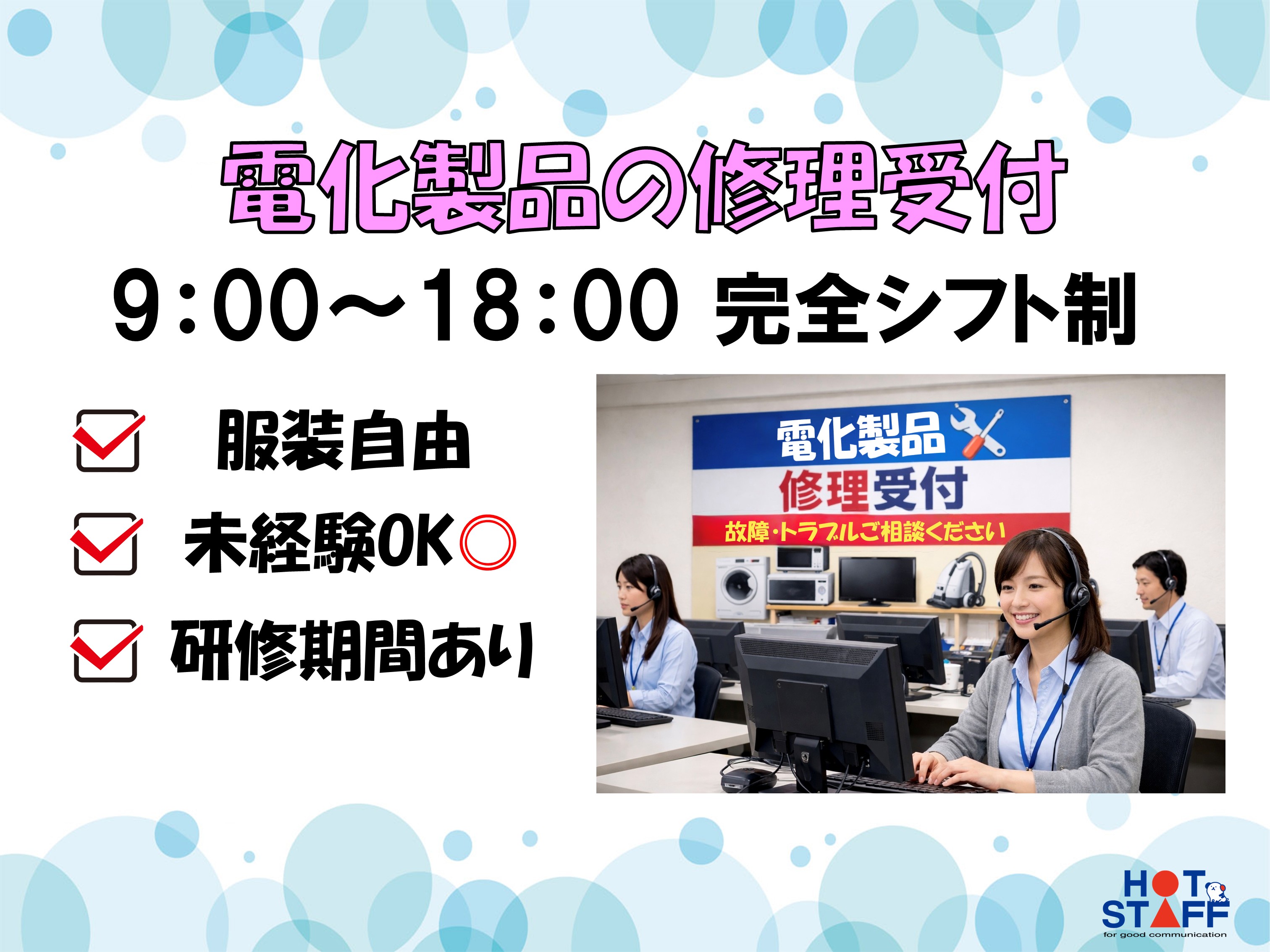 街中×法人向け空調・冷凍機の修理受付/1日25件程度で無理なく働く!未経験歓迎のオフィスワーク