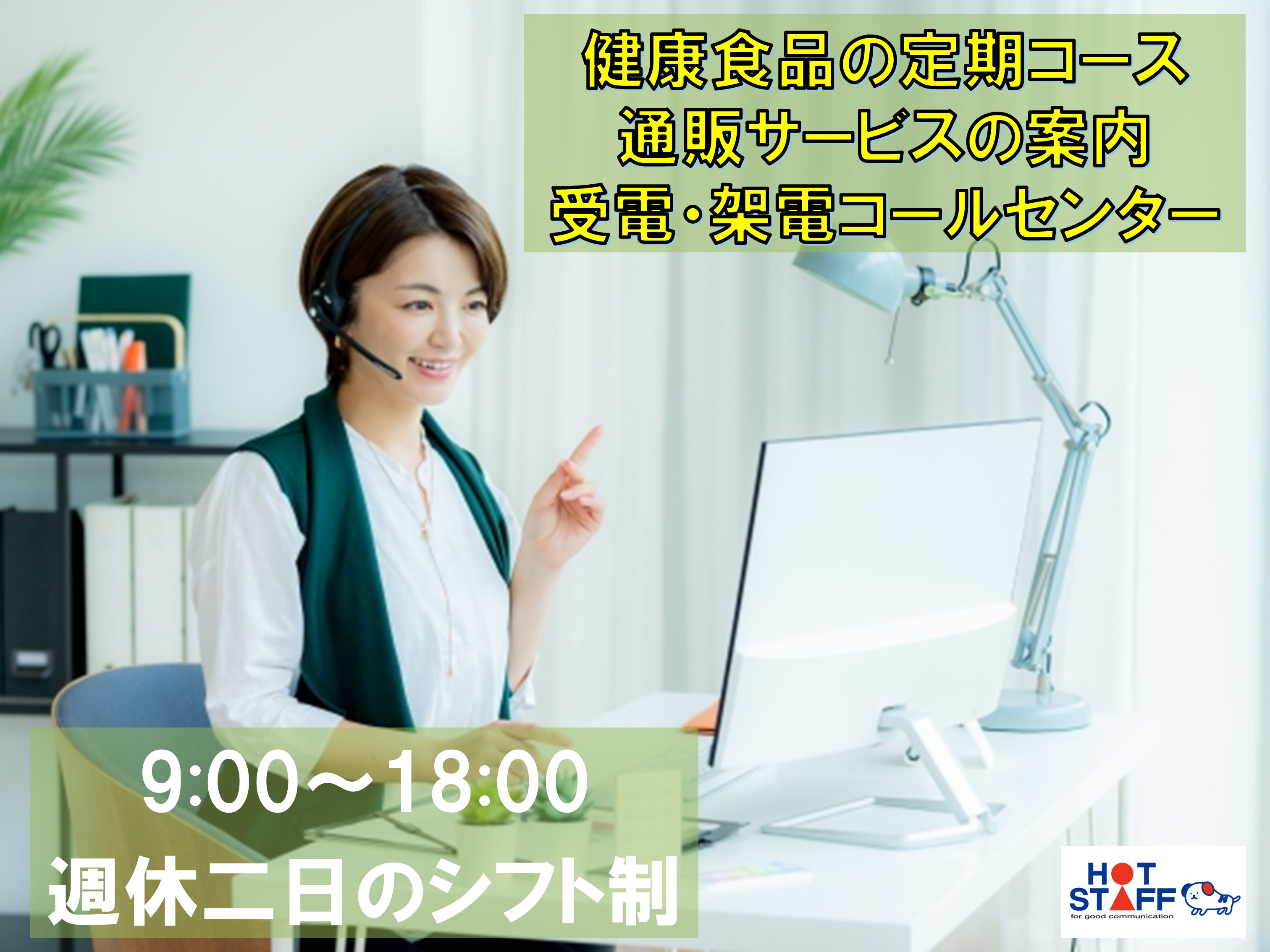 健康食品の定期購入や法人向けの通販サービスの案内・週休二日のシフト制・服装や髪色も自由