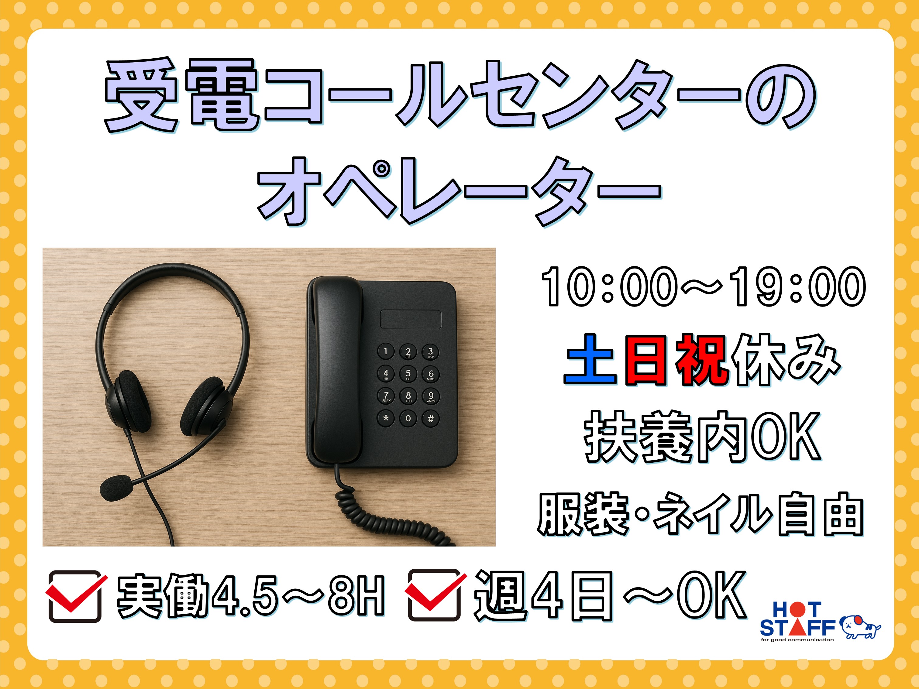 受電のみオペレーター業務・通販の注文や問い合わせ・週4日扶養内勤務OK・土日祝休み