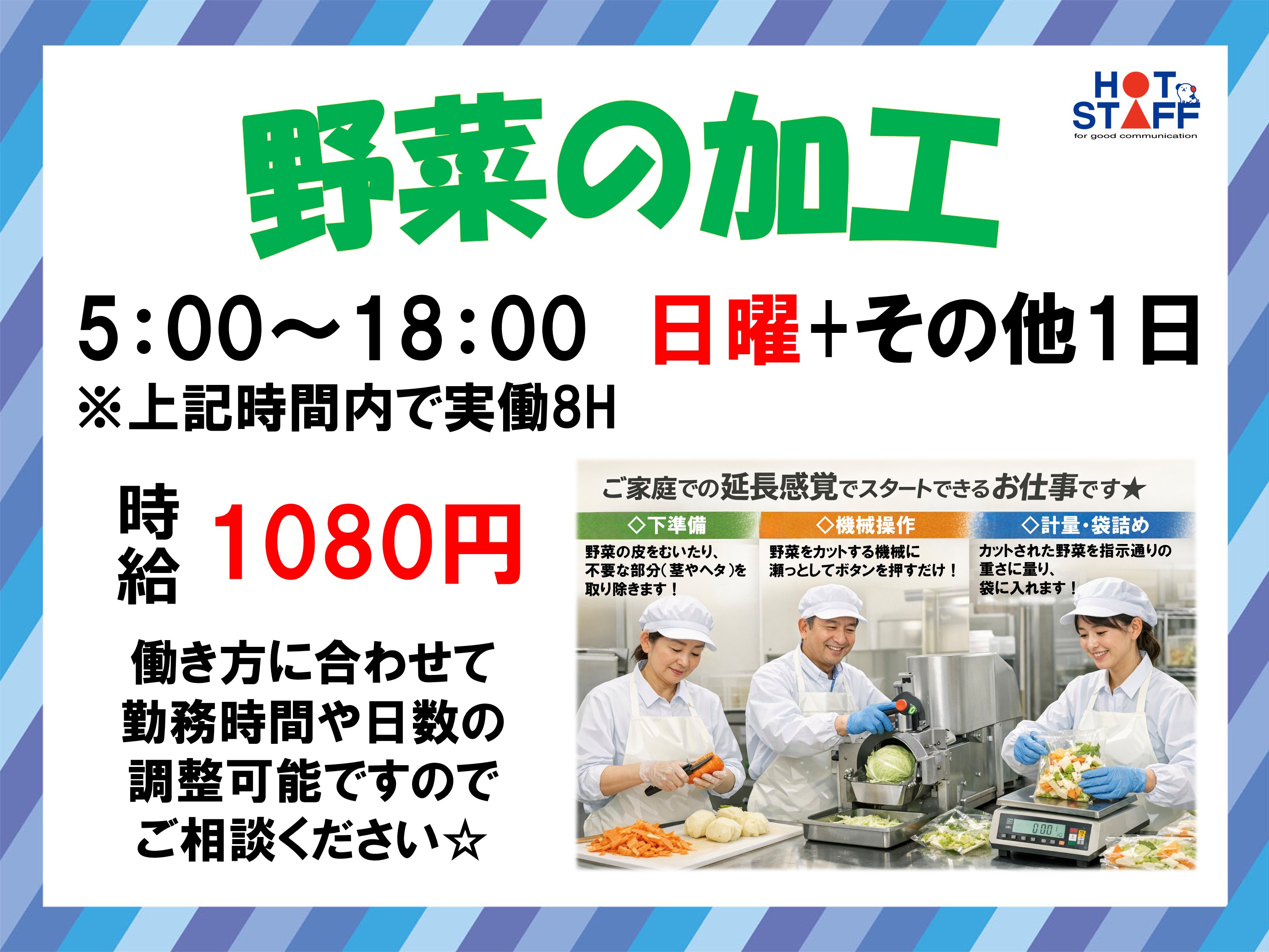 野菜のカット・袋詰め×波島/シンプル作業☆地域の給食を支えるお仕事です♪即日払いOK☆
