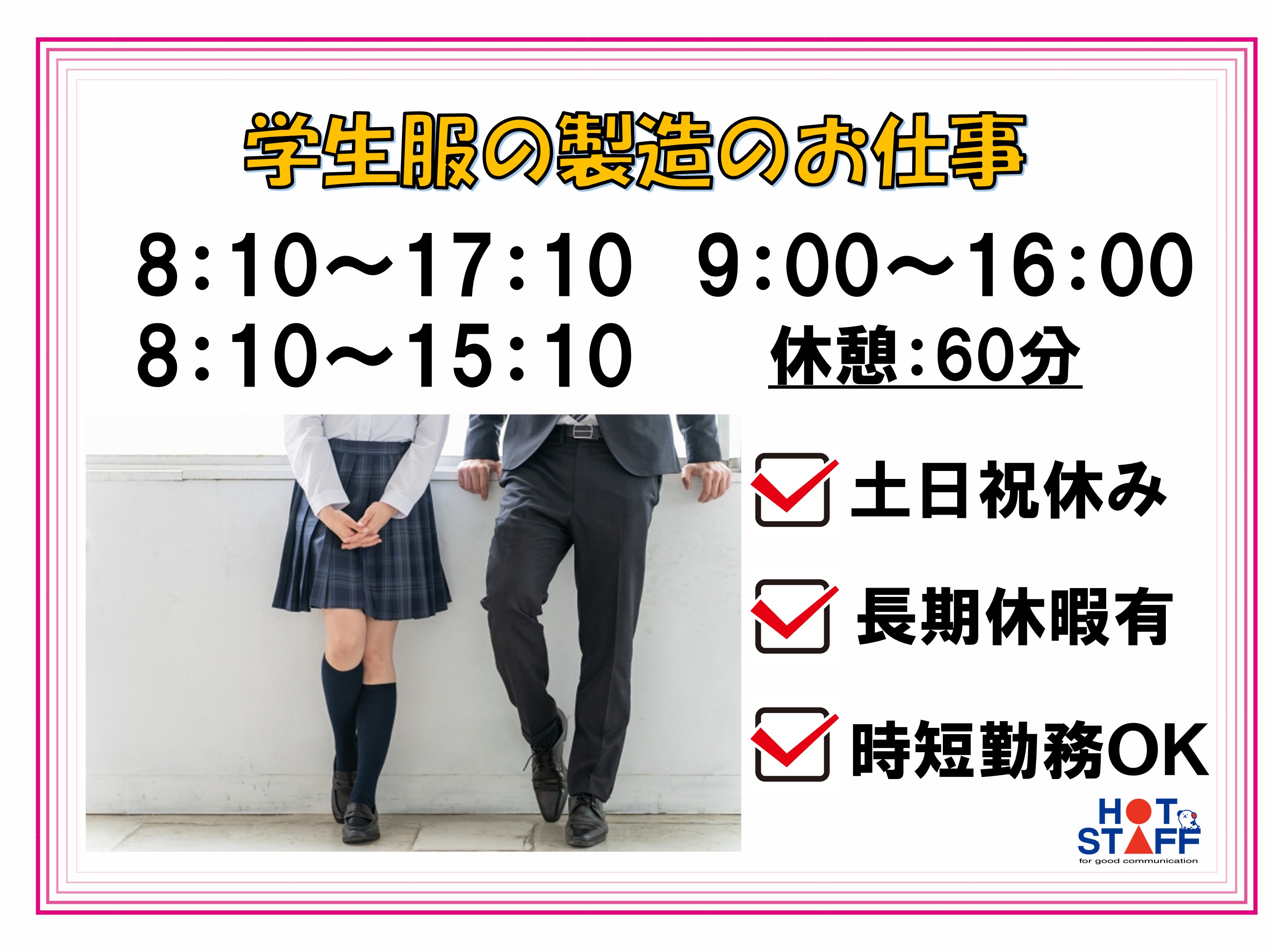 生地の裁断や在庫管理・軽作業のお仕事・土日祝お休み・時短勤務もご相談ください!