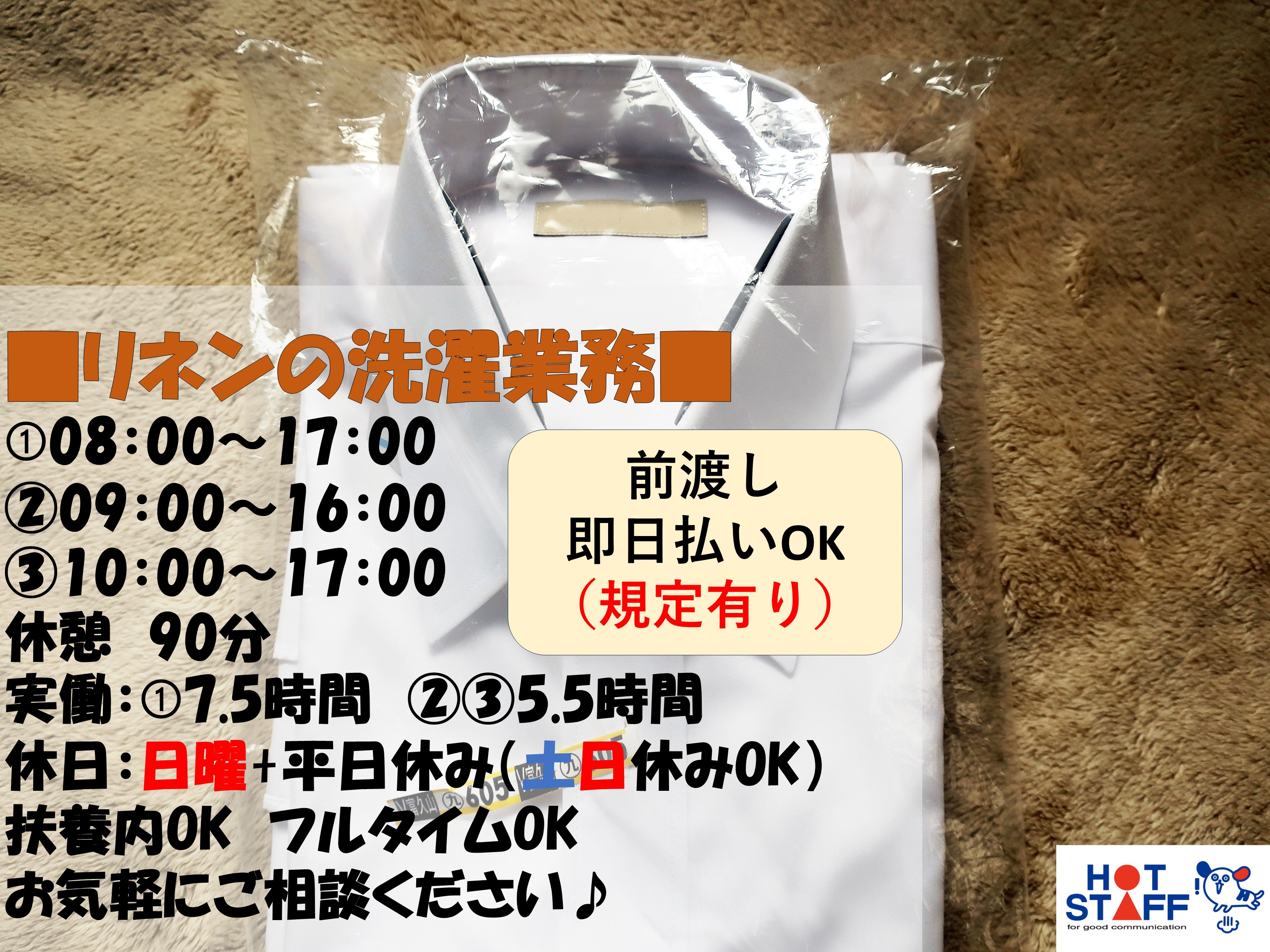 赤江×リネンの洗濯業務/未経験大歓迎/折り畳みや仕分けなど工程が複数あり!勤務時間選べます!