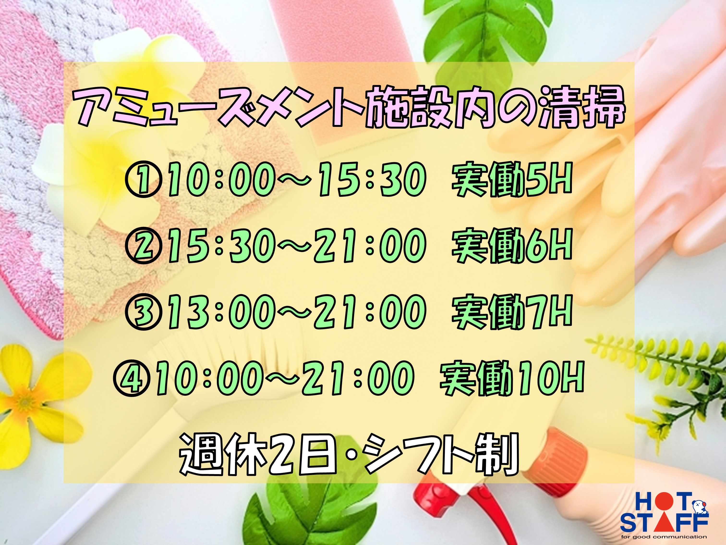 アミューズメント清掃・駅近!徒歩圏内・完全シフト制・研究期間充実・制服貸与あり
