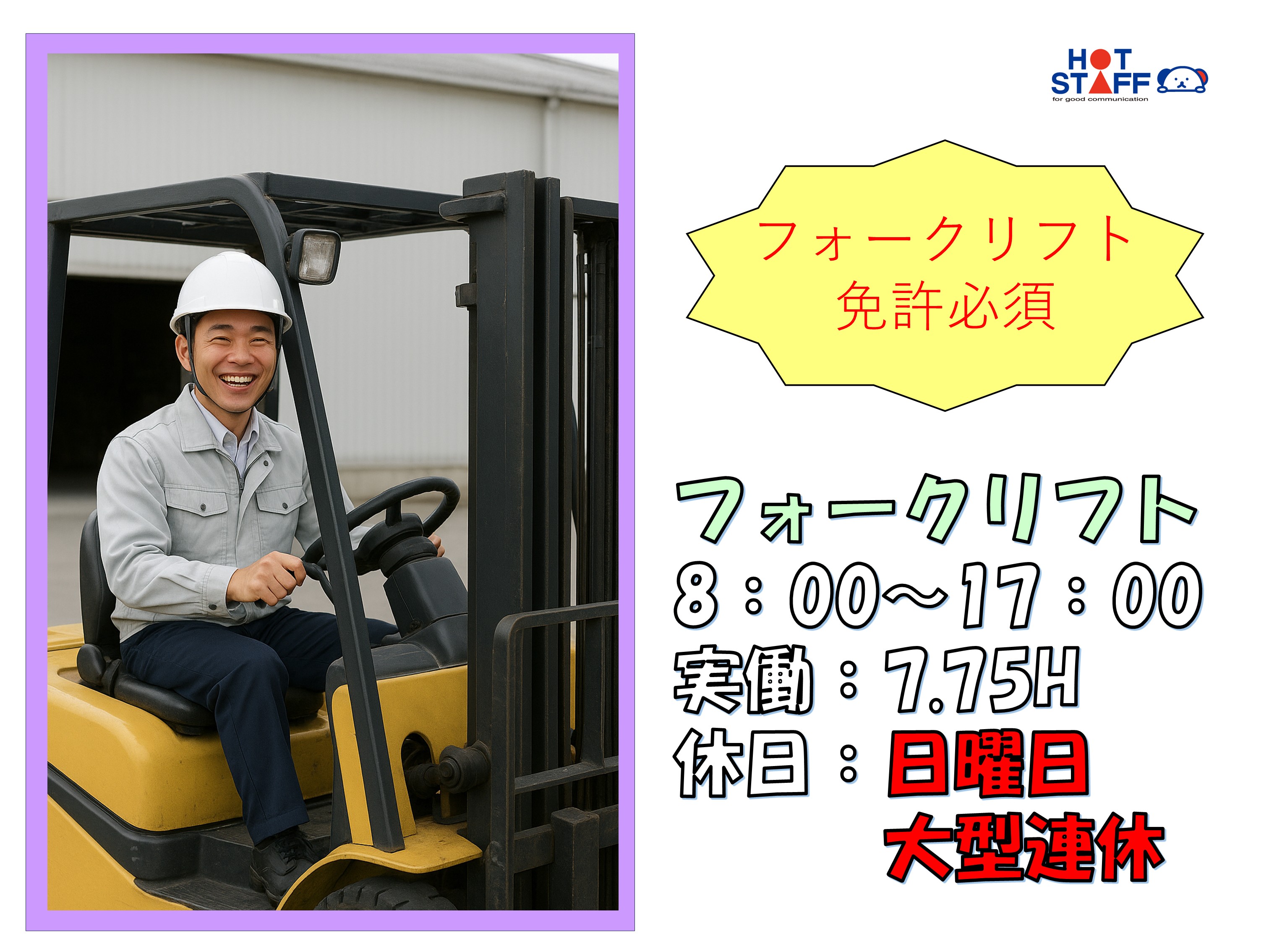 フォークリフトを使って荷積みや荷降ろし作業・大型連休あり・制服貸与有り