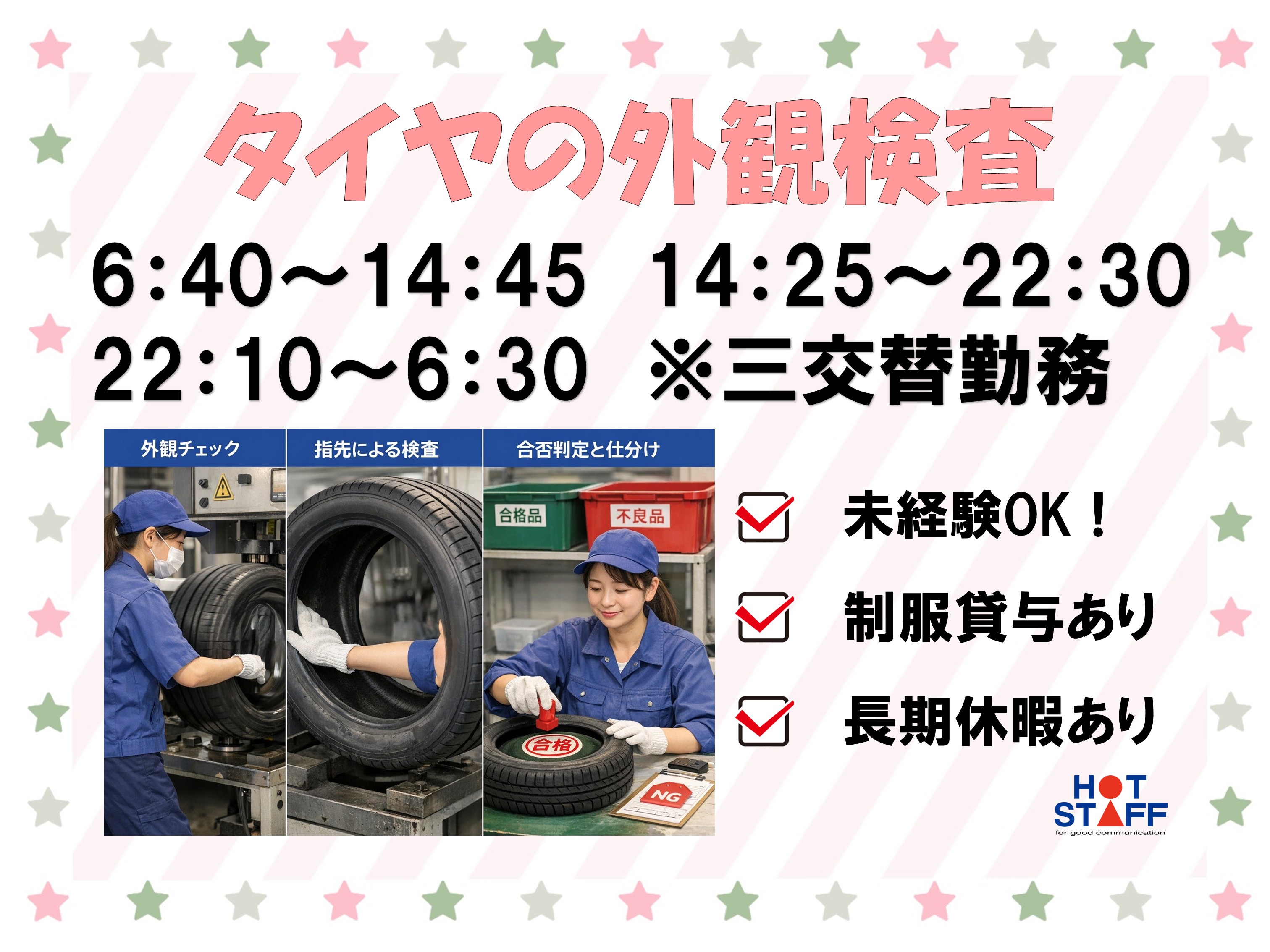 高時給!3交替制でしっかり稼げる・ゴム製品の検査スタッフ・長期休暇あり・未経験OK★