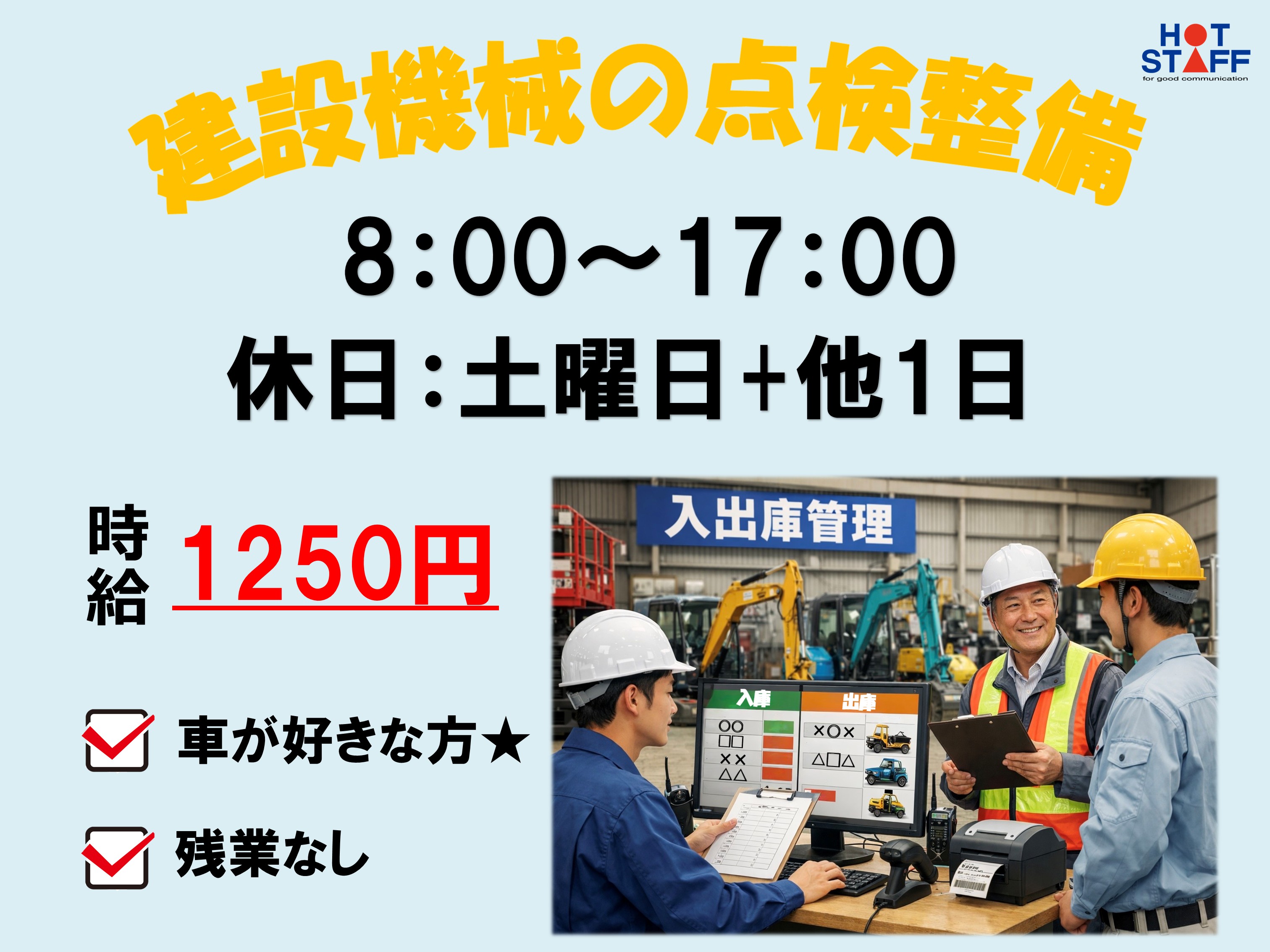 西都市×重機の入出庫管理・点検スタッフ/難しい修理なし☆コツコツ洗車・点検メインの軽作業!