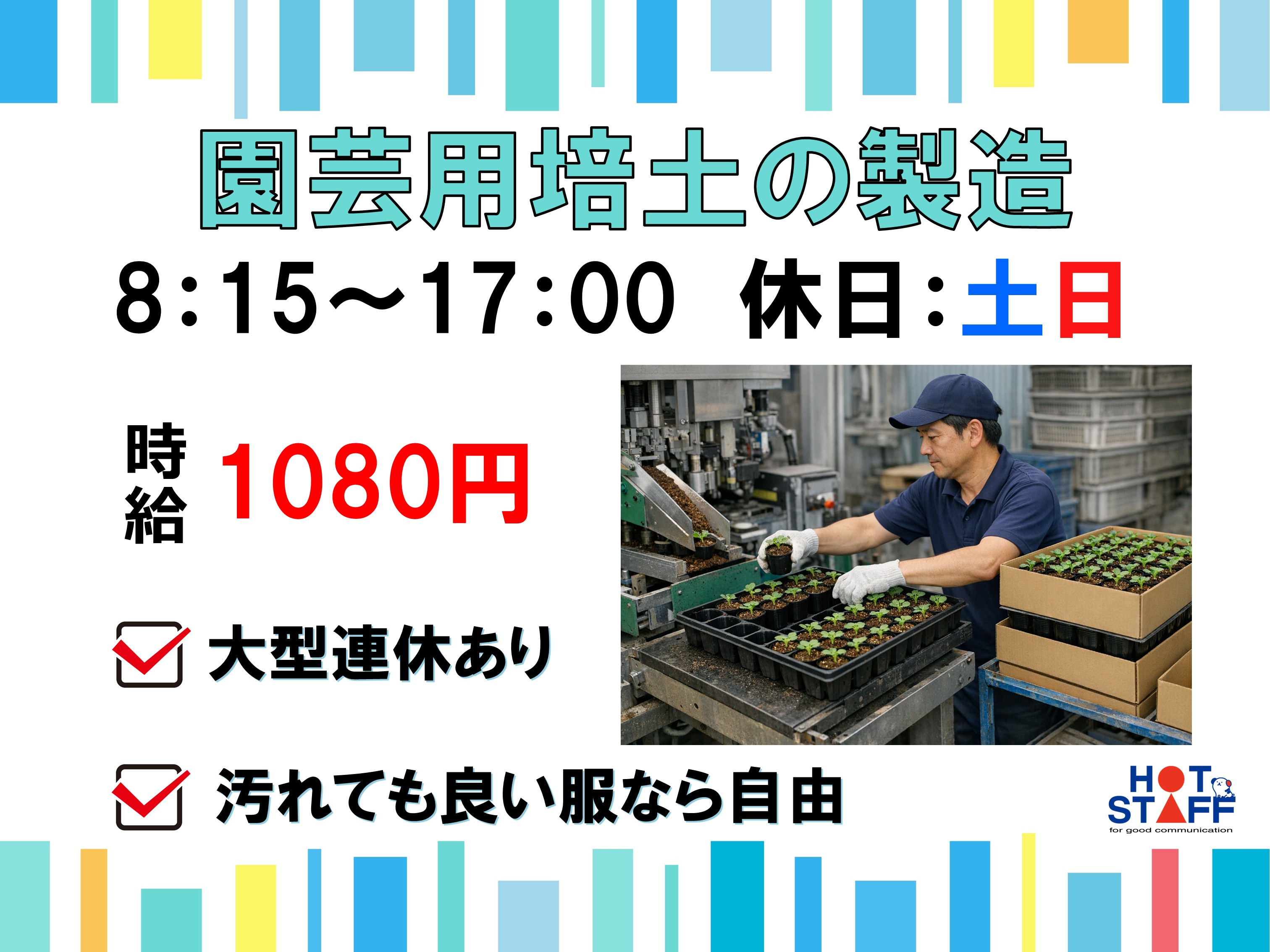 国富×園芸用培土の製造及び出荷準備/土日休み!大型連休あり☆未経験でも始めやすい簡単な軽作業♪
