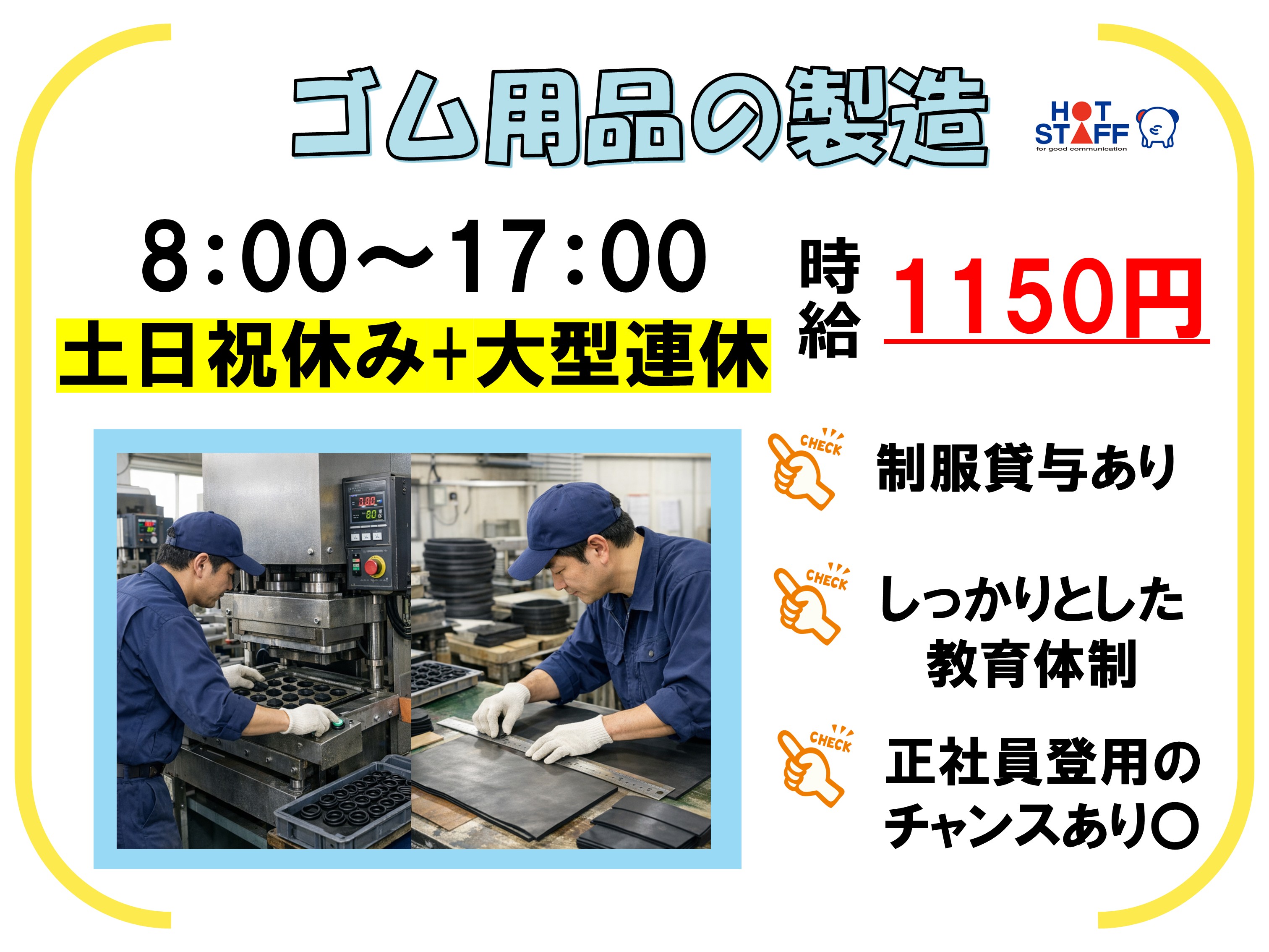 西都×ゴム製品の加工/土日休みでプライベートも充実♪残業ありでガッツリ稼げる!即日払いOK!