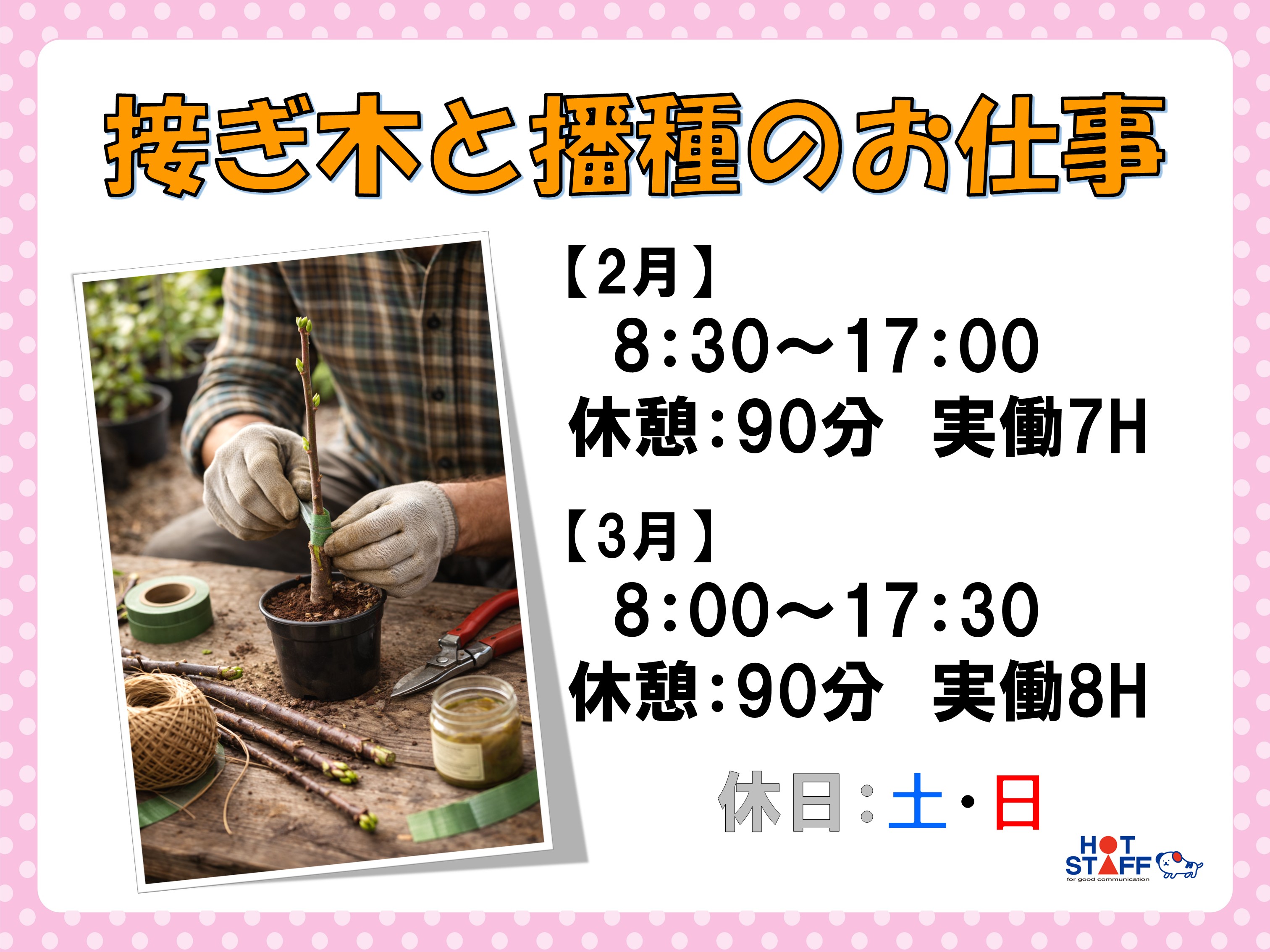 高鍋×3月までの短期/完全座り仕事!未経験OK☆接ぎ木のスキルが身につく!前渡しOK!