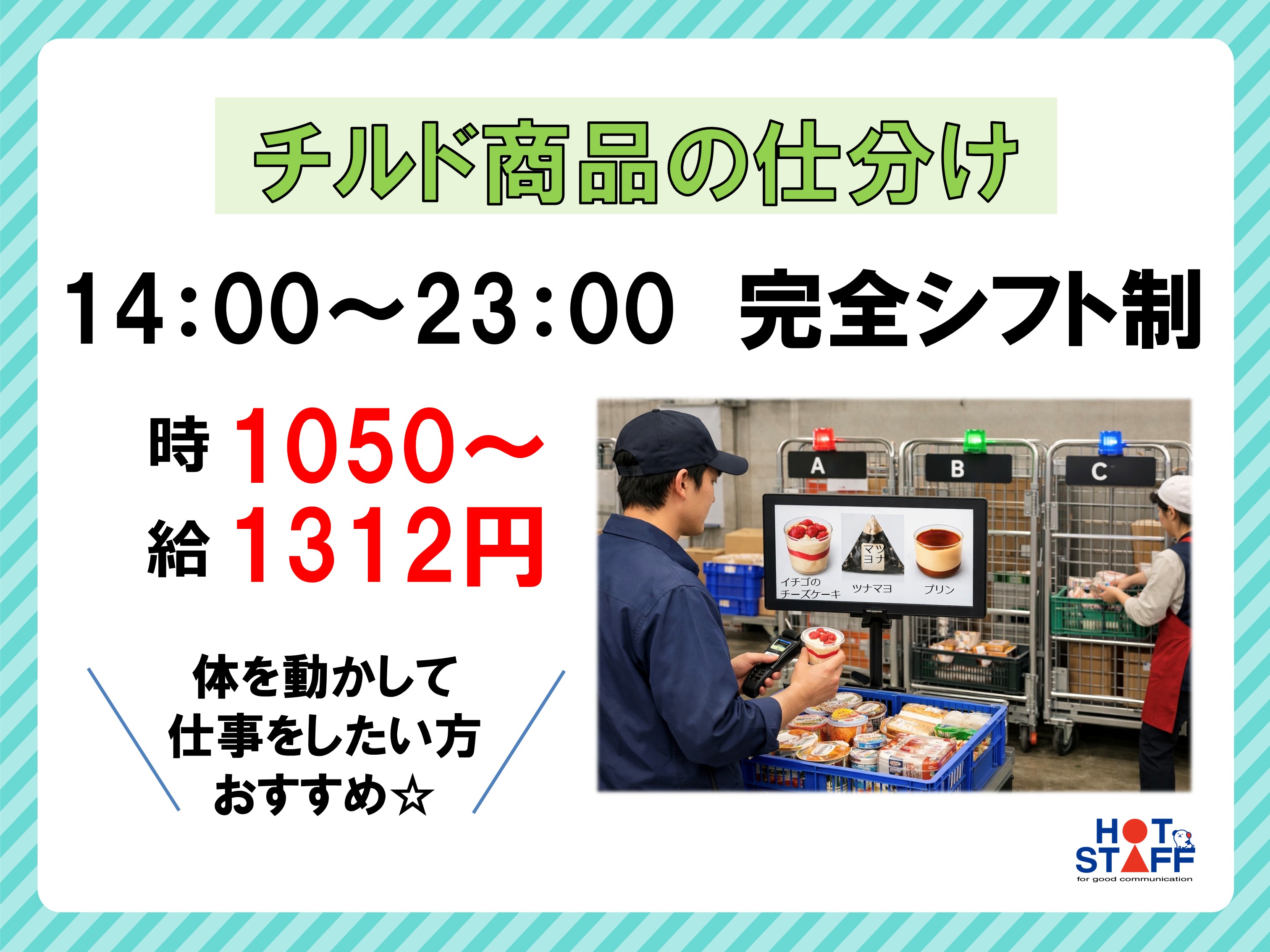 赤江×チルド商品の仕分け/無料駐車場完備◎午後からのお仕事♪未経験OK☆即日払いOK!