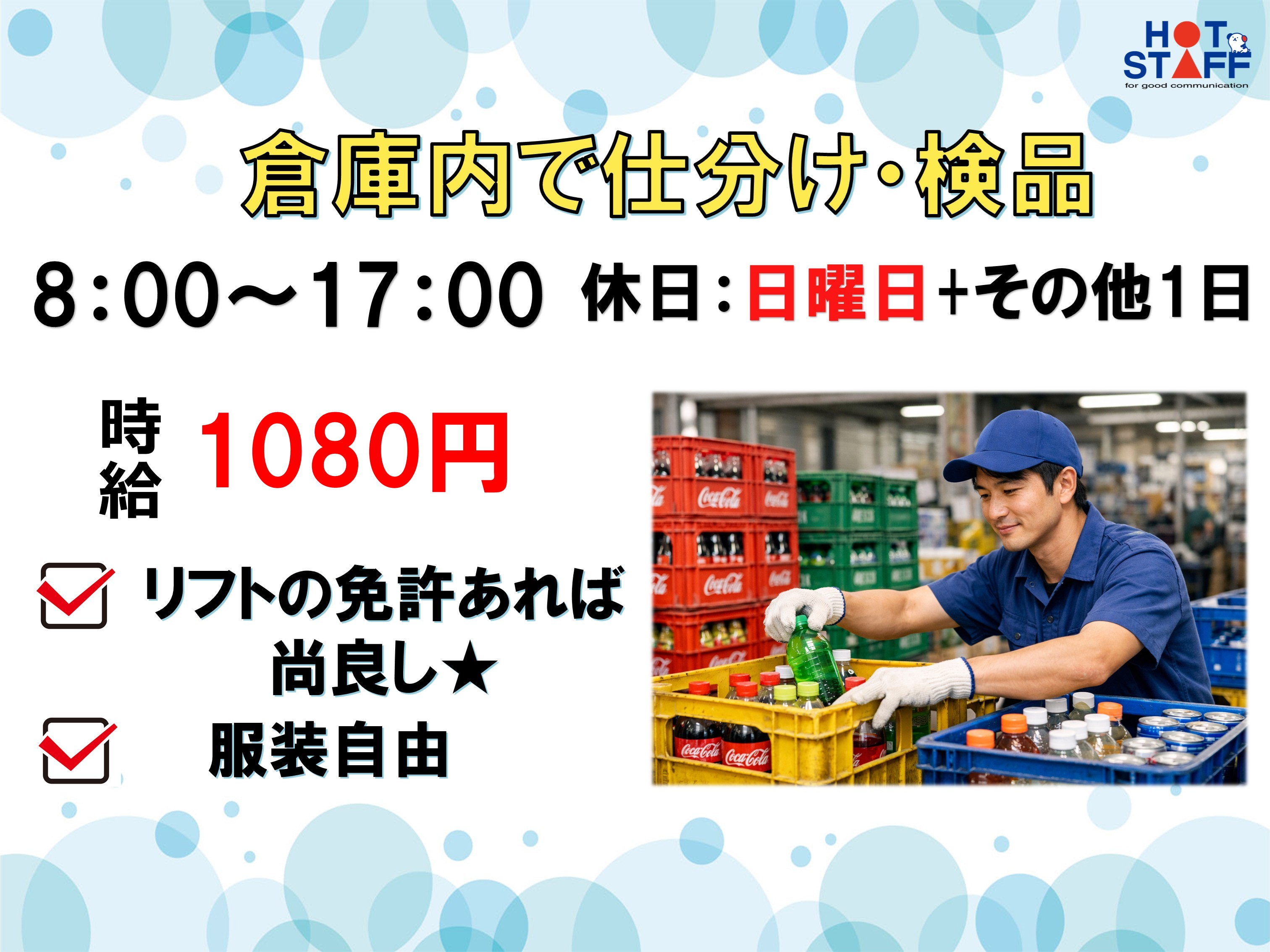 無料駐車場完備◎シフト制だけど土日休み相談可!未経験OK!前渡し・即日払いOK!その他福利厚生充実!!