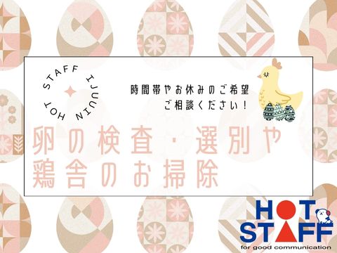 \高時給1,200円/未経験OK!【柔軟なシフト対応◎土日休みなど相談可】卵の検品作業と鶏舎の清掃♪