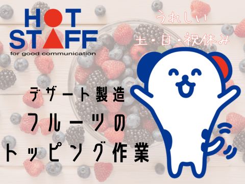 【8月末までの期間限定/土日祝休み】冷凍のデザート製造♪フルーツのトッピング&検品や箱詰めなど!