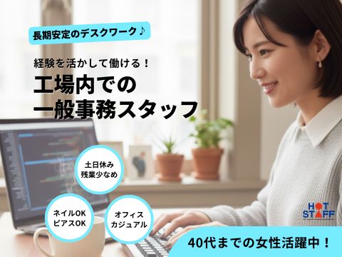 【南陽市】ネイル・ピアスOK|オフィスカジュアルでオシゴト!工場内で書類整理や電話対応などの事務作業☆彡