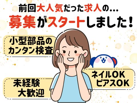 《人気だったオシゴトが復活!》5キロ未満の小型部品を拡大鏡などでチェック!梱包作業あり◎日勤のみ◎