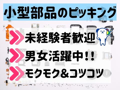 大人気のピッキングのお仕事!《小型部品を棚から探し出して運ぶ/数を数えて準備する》土日祝休み/重量物ナシ/経験不問