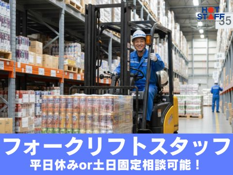 【平日休み・土日休みの相談可能!】フォークリフトの免許を活かしてオシゴトができる♪日勤・前渡しOK