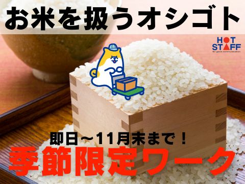 《お米の荷受けや、機械への投入などのオシゴト》即日~11月末までの短期!体を動かして働く☆