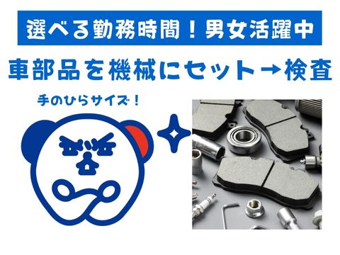 【8:10~日勤・19:00,20:00~夜勤選べます】 土日祝休み/手のひらサイズの車部品を機械にセットして取り出す作業