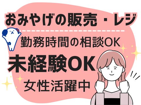 \勤務時間の相談OK♪/おみやげ販売店で接客やレジ、品出しのお仕事★未経験者大歓迎!
