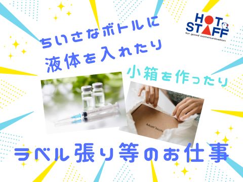 【土日祝お休み・日勤】小さなボトル注入・化粧箱作り・ラベルシール貼りのお仕事♪