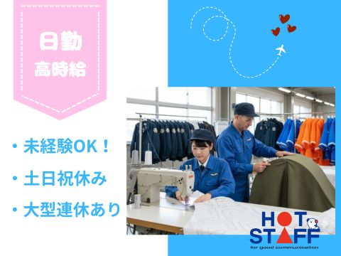 \未経験OK!/ 土日祝休み・残業少なめ◎空の安全を支える!特殊アパレル工場での製造スタッフ募集!