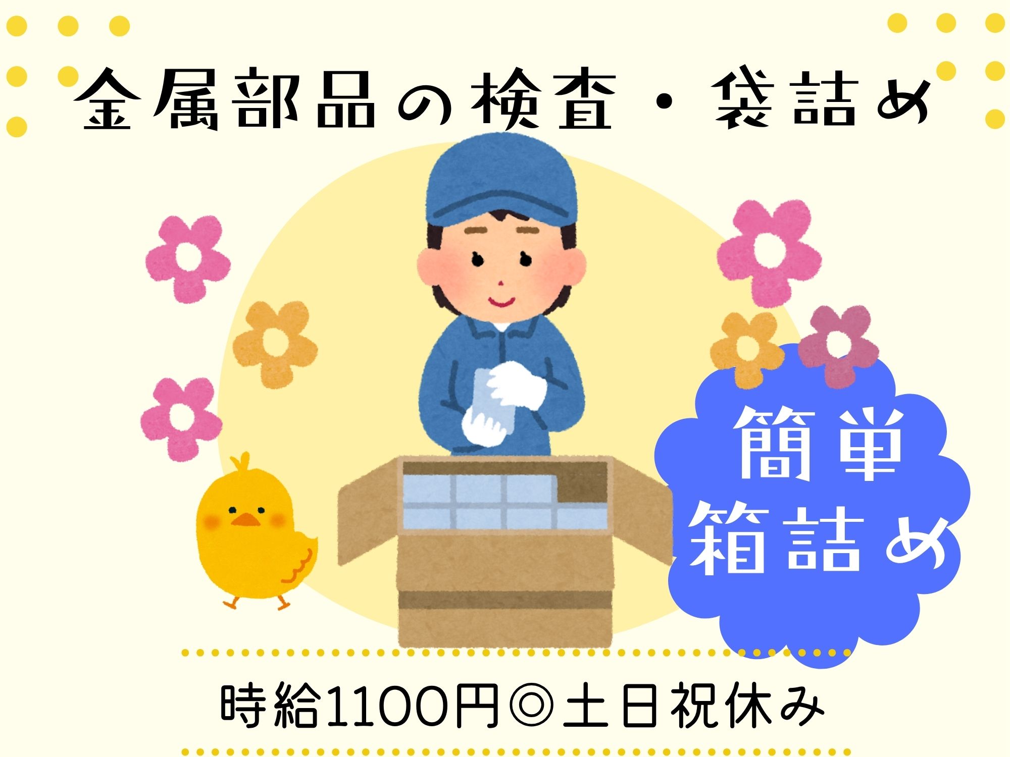 【1月スタート案件】土日祝休み/動きのあるお仕事です☆電子部品の箱詰め♪