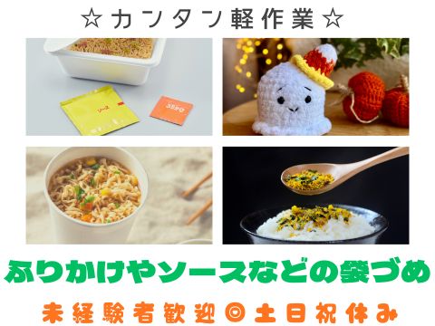 時間帯相談可能/初めての工場スタートの方にオススメ/カップ麺などのソースやふりかけを袋に入れるだけ♪