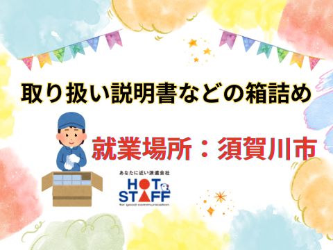 【お友だちと応募もOK◎最短即日勤務可能】/土日祝完全休みで年間休日125日以上☆説明書と発泡スチロールを箱に入れるだけの軽作業(^^♪