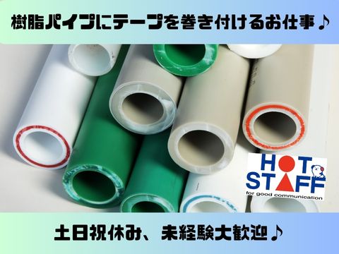 【3交替☆】土日祝休み・高時給・樹脂パイプにテープをまきまき☆カンタンなお仕事♪