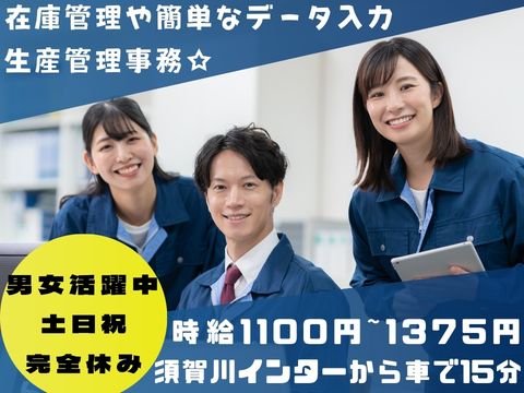 カンタンなPC操作が出来ればOK!土日祝休みで大型連休あり/年間休日120日以上/データ入力や受発注などの生産管理事務☆
