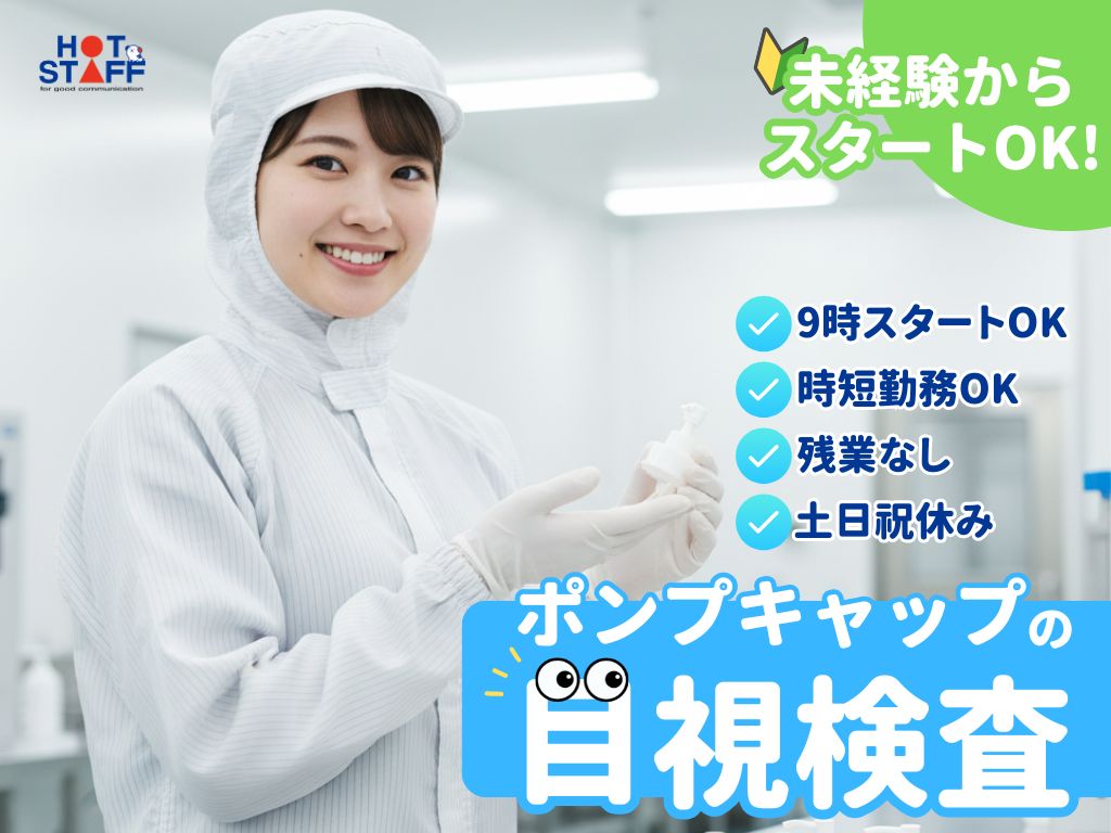 大田原市|9時スタート・時短OK★/土日祝休み・残業なし/軽作業♪かる~いキャップの目視チェック!