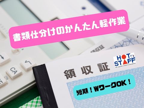 2. 【大人気のかんたん軽作業】急募!!短期・短時間!WワークOK☆私服勤務OK♪伝票の仕分けや読み取りのお仕事♪