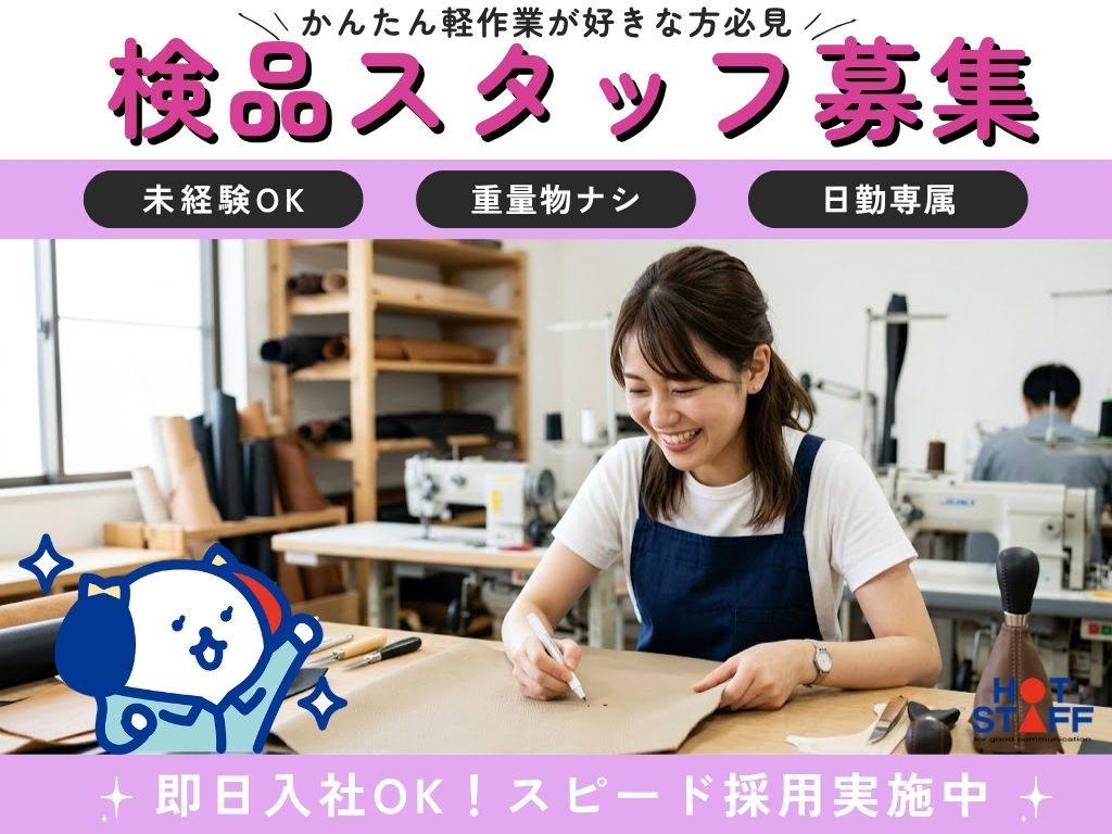 \土日祝休み&大量募集で仲間がたくさん◎/未経験OK☆人気の重量物ナシ!革に穴がないかチェック☆彡