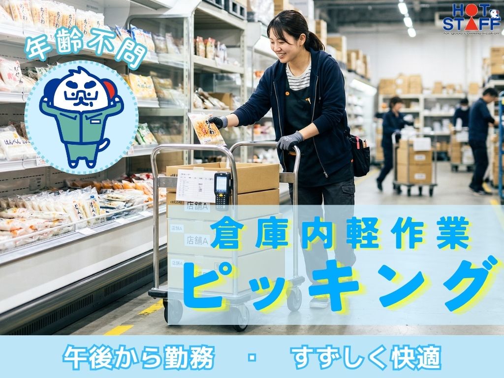 【未経験OK】午後からゆったり×モクモク軽作業|暑い時期も快適◎台車を使ってお買い物感覚でピッキング☆