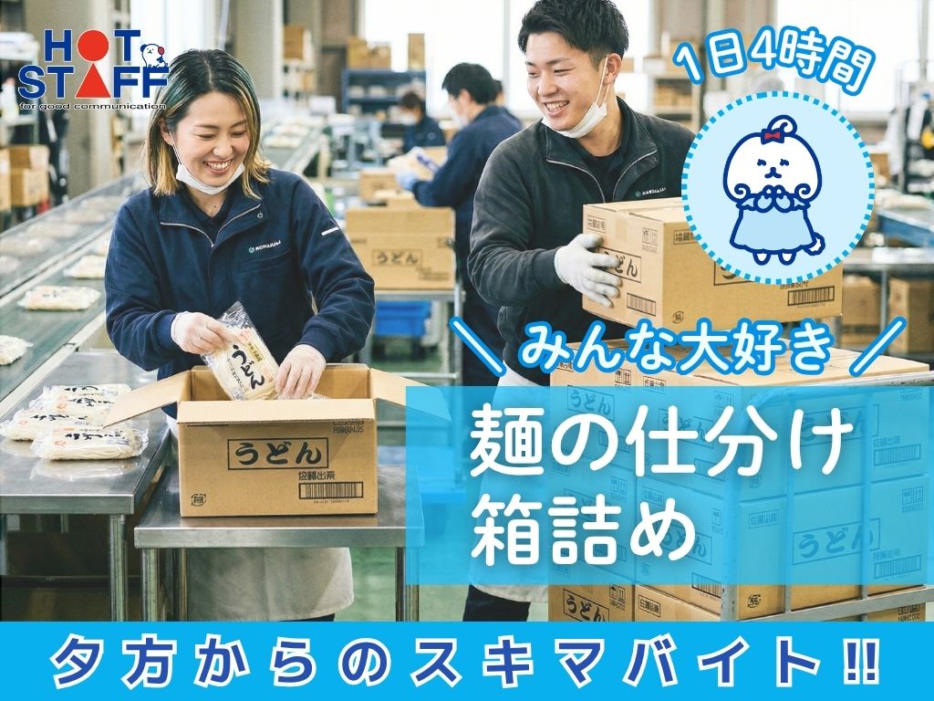 \超かんたん/駅チカ・夕方からの4時間だけ◎スキマ時間ワーク|麺を段ボールに箱詰めするだけ♪